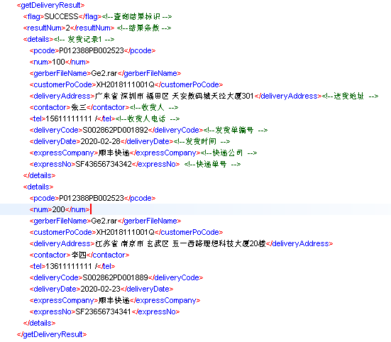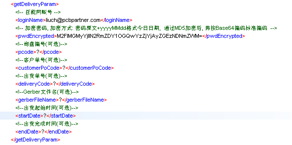 deliveryDate | 出货时间 | String | 询盘Gerber文件名yyyy-MM-dd格式, 如2020-01-03 | |